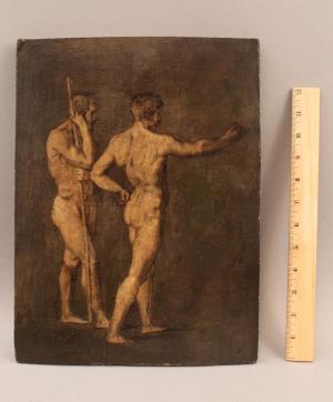 Early Antique 18thC Old Master Nude Man Male Figure Study Portrait Oil Painting