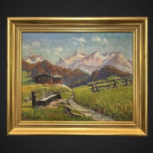 Antique Carl Reber 18701931 Switzerland Landscape Oil Painting on Boa