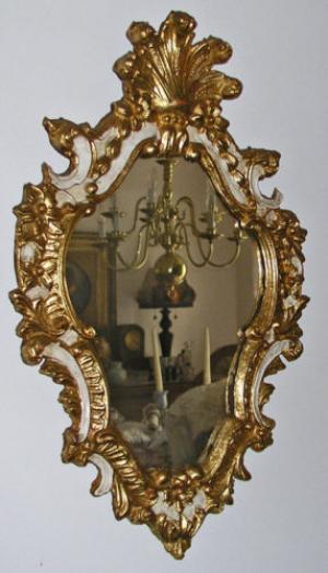 Old "Rococo" Carved Wood & Gold Gilt Frame Mirror Italian Shield Shaped