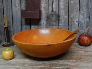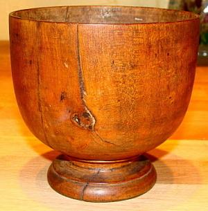 ANTIQUE TURNED TREEN WOODENWARE FOOTED BOWL