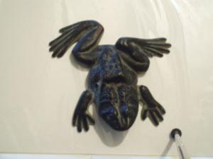VINTAGE VIRGINIA METALCRAFTERS CAST IRON LEAPING BULLFROG DOOR STOP