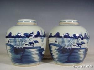 PAIR CHINESE BLUE WHITE PORCELAIN GINGER JAR 9" H