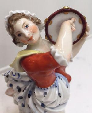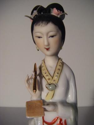 Finely Hand Decorated Vintage Porcelain Lady With Flowers China Wood Stand