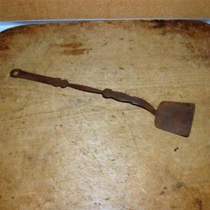 GREAT DECORATED 18TH C WROUGHT IRON PENNSYLVANIA LONG HANDLE SPATULA OR PEELER