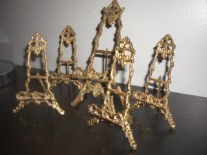 Lot of 5 Vintage Brass Easel Picture Holder Table Display Art Painting Plates