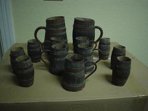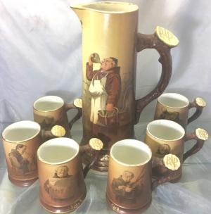 Great Western Pottery Monk Tankard Pitcher Stein W 6 Mugs Cups Tiffin OH Art