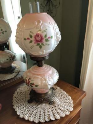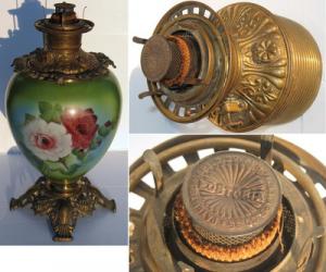 ANTIQUE VICTORIAN - FOSTORIA PAINTED GLASS-FLORAL LAMP PATENTED SEPT. 9, 1890