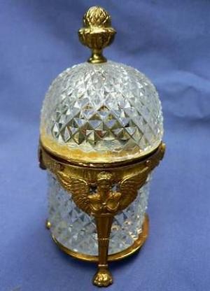 VINTAGE FRENCH EMPIRE CUT CRYSTAL BRONZE DORE ORMOLU DOMED MYSTERY JAR???
