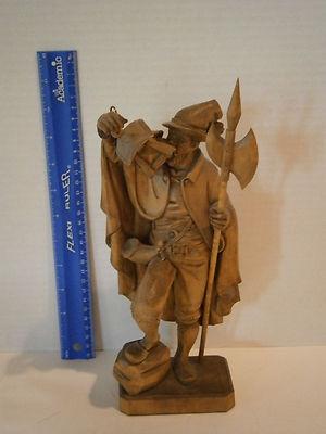 German Black Forest Carved Statue, Figurine Hunter with Lantern