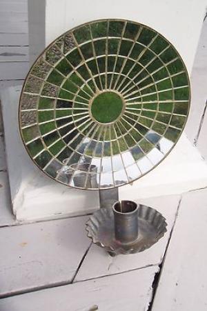 19thC Antique JEWISH Judaica FRAGET N PLAQUE Shabbat SILVER / BRASS Candlestick