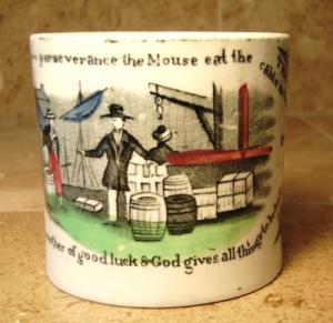 Antique Pearlware Transferware Childs Mug Franklins Poor Richard Maxims
