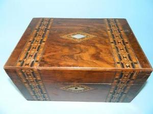 Antique Inlaid Tunbridge Ware Inlay Writers Jewellery Wooden Box 1800s