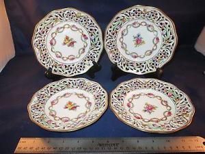4 Schumann Arzburg Fluted Reticulated Dresden Rose Fruit Plates Germany