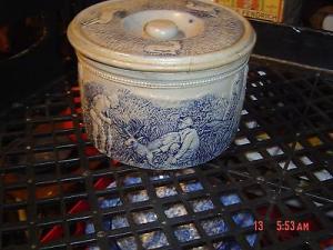 Antique Whites Utica 2 pound Butter Stoneware Crock lid Embossed Hunt/Stag Scene