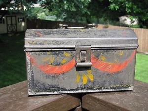 EARLY 1800'S TOLE PAINTED DOCUMENT BOX with BRASS HANDLE / NEW ENGLAND
