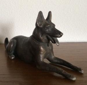 Antique German Shepherd Dog Bronzed Hallmarked 9 1/2" X 4 1/4"