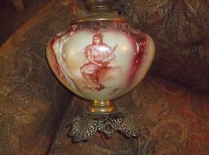 ESTATE Antique Hand Painted GWTW Banquet Parlor Globe oil Lamp Shade. NO RESERVE
