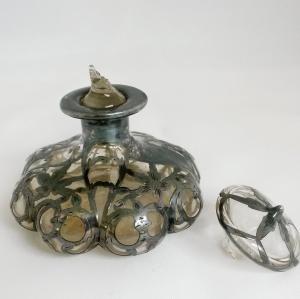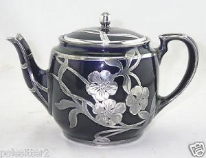 Antique LENOX Art Nouveau Sterling Silver Overlay on Cobalt Blue Sm Teapot & Lid