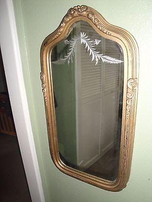 Beautiful Vintage Etched Wall Mirror Carved Frame