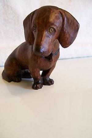 VTG.DACHSHUND WEINER DAKEL DOG WOOD CARVED BLACK FOREST GERMAN FIGURE FIGURINE