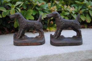 (2) ANTIQUE AIREDALE TERRIER OLD SOLID CAST IRON DOG BOOKENDS