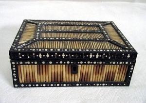 ANTIQUE INLAID ANGLO CEYLONESE EBONY & PORCUPINE QUILL MATARA COVERED BOX