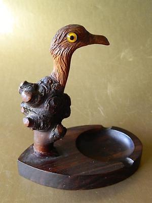 English Art Deco YZ Howell Dunhill Lucite & Carved Wood Bird Vulture Ashtray