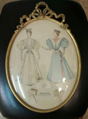 Vintage French Frame Oval Gold Tone Curved Glass with Bow On Top LARGE 22x14"
