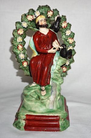 Early Antique Staffordshire / Pearlware Figurine of Elijah and Ravens w Bocage