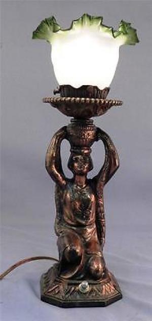 Antique~Vintage c1920 Art Deco Egyptian Revival Maiden Radio~Desk Lamp~NR
