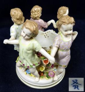 ANTIQUE GERMAN RING AROUND THE ROSES CHILDREN PLAYING FLORAL FIGURAL PLANTER