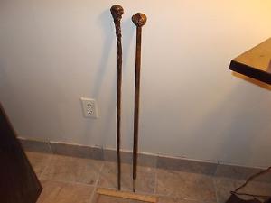 ANTIQUE DARK WOOD ROOT TOP VICTORIAN 34"WALKING STICKS-CANES 2PC. NO-RESERVE