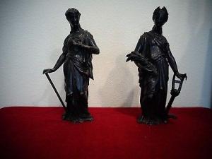 PAIR OF ANTIQUE SPELTER SIDE STATUES, VERY GOOD CONDITION