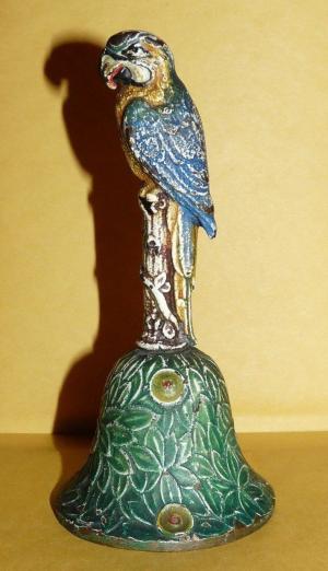~VTG~ANTIQUE~"HUBLEY"~CAST IRON & BRASS~"PARROT"~HANDLE~BELL~w/ ORIGINAL PAINT~