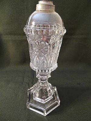 Antique Boston and Sandwich Glass Pressed TULIP Oil Lamp Hexagonal Base ORIGINAL