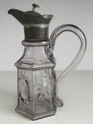 Antique Early American Mold Blown Glass STAR AND PUNTY Syrup Pitcher Apld Handle