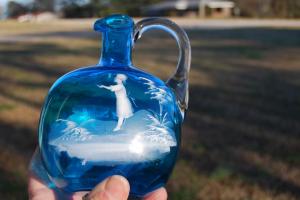 Blue White Mary Gregory Advertising Pitcher/Liqueur Surfine P. Bardinet Limoges