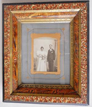 1880 Victorian Eastlake Faux Tortoise 3 Tier Antique Hand Painted Picture Frame