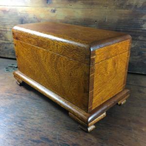 EXQUISITE VINTAGE MAHOGANY TEA CADDY WOODEN BOX TRINKET JEWELLERY BOX FOOTED