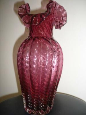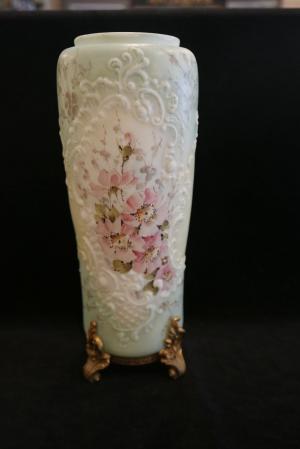 ANTIQUE 12 1/2" TALL WAVECREST FOOTED VASE W/ FLOWERS