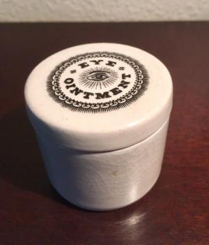 ANTIQUE EYE OINTMENT ADVERTISING PRINT, JAR/CROCK/POT LID, CERAMIC
