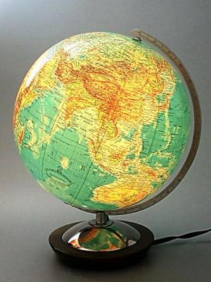 VINTAGE WORLD GLOBE illuminated GLAS 10 " LAMP DESK LIGHT NEAR MINT NO DEFECTS