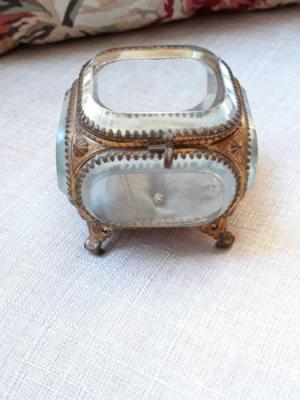 SWEET ANTIQUE~VICTORIAN FOOTED JEWELRY BOX/CASKET~BEVELED GLASS~ORMOLU~1800''s