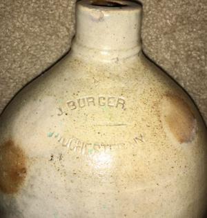 RARE Antique J. BURGER ROCHESTER NY Stoneware Jug. (J.Burger Jr.?)