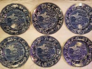 Antique Historical Blue Staffordshire Plates Grapevine Series "Wellcombe" c1825