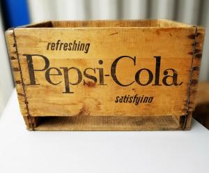 Vintage Wooden Pepsi Crate, Black "Pepsi-Cola" Text, Pop Bottle Carrier Box
