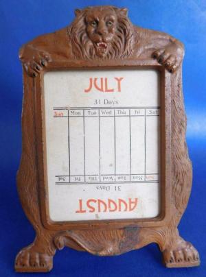 C1900s Austrian Cold Painted Cast metal Lion Calendar Frame with Mirror