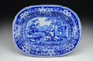 Staffordshire Early Historical Blue Serving Platter with Scenery 19th Century