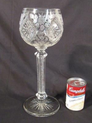 EXQUISITE & HUGE CUT GLASS 13" WINE CHALICE ATTR. BOHEMIAN - AIR TWIST STEM