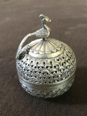 Rare! Antique Victorian Decorative Chinese Ornate Sterling Peacock Bird Jar
